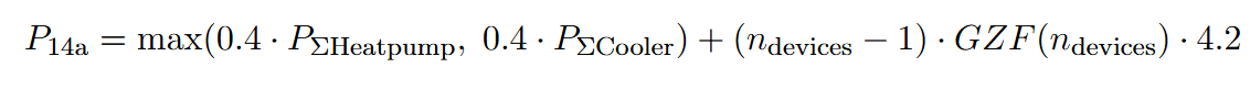 Si la suma de la potencia de conexión a la red de bombas de calor o refrigeradores es mayor a 11kW, usamos la siguiente fórmula: