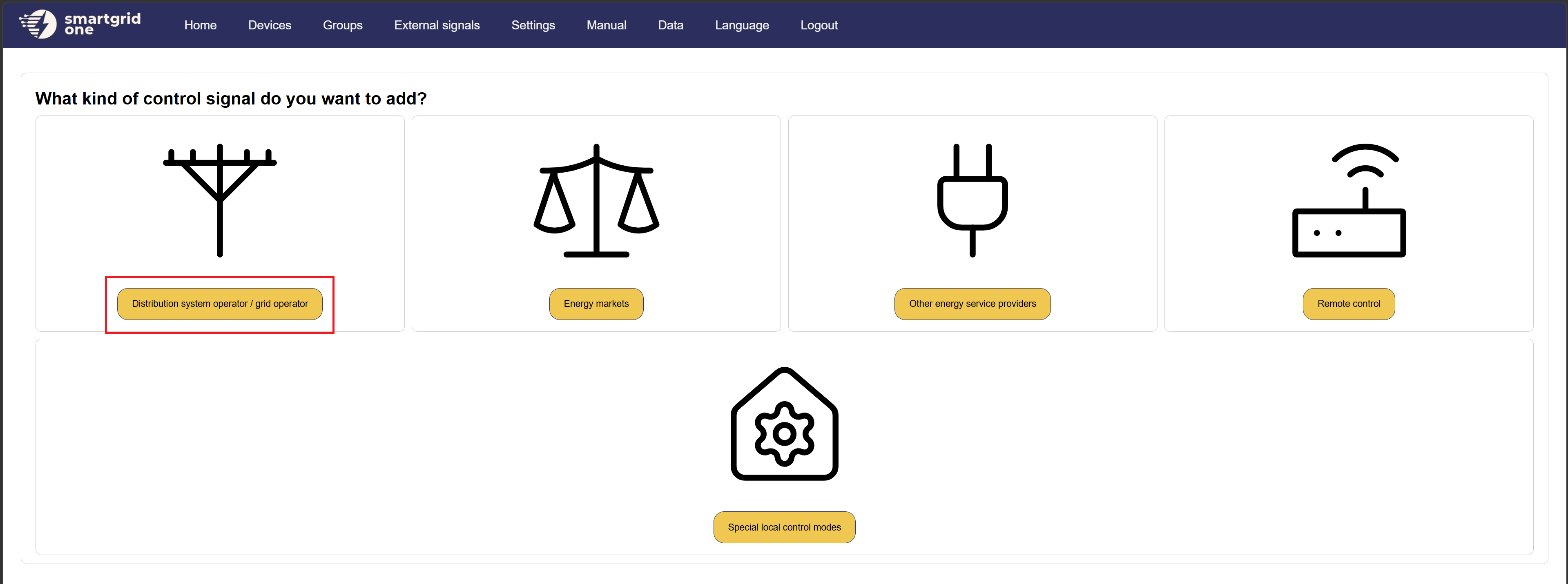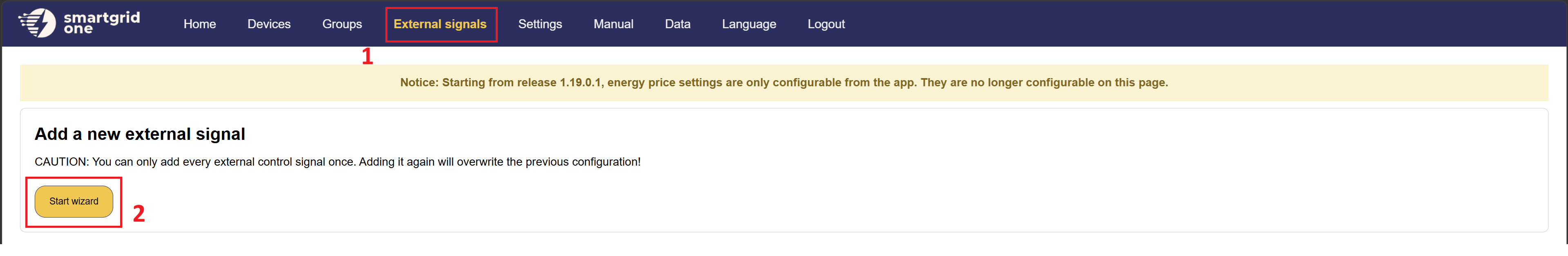 Manualen beskriver stegen för att installera RESA Extern Styrning på SmartgridOne Controller.