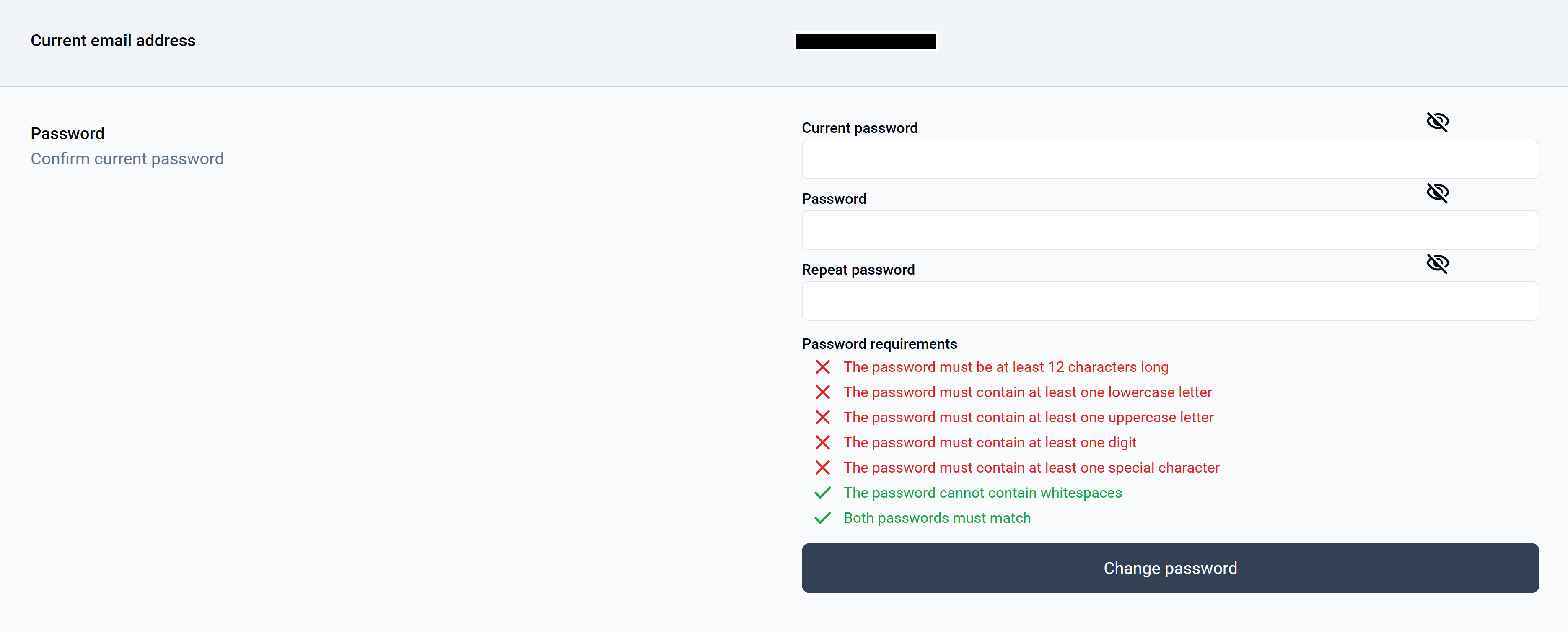 Det rekommenderas starkt att du använder din e-postadress som användarnamn. Om du inte gör detta och glömmer ditt lösenord, kommer det inte att vara möjligt att återställa ditt lösenord.
